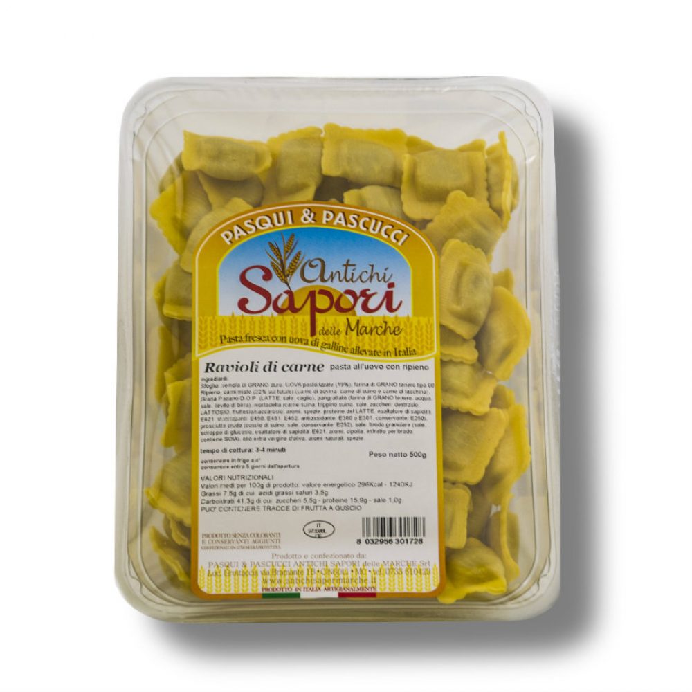 I ravioli di carne prodotti con l’inconfondibile metodo Antichi Sapori delle Marche, fanno parte della vasta scelta di paste all’uovo fresche, corte e ripiene, che l’azienda cingolana, propone con enorme successo ogni anno al mercato del food globale. Di forma quadrata e dal colore giallo intenso, i ravioli sono senza dubbio, uno dei prodotti a base di pasta, più conosciuti al mondo. Ripieni di carne di primissima scelta, si prestano benissimo a preparazioni in brodo o asciutte.